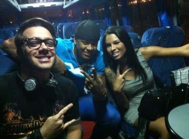 Léo Santana é clicado em ônibus ao lado de ex-BBBs